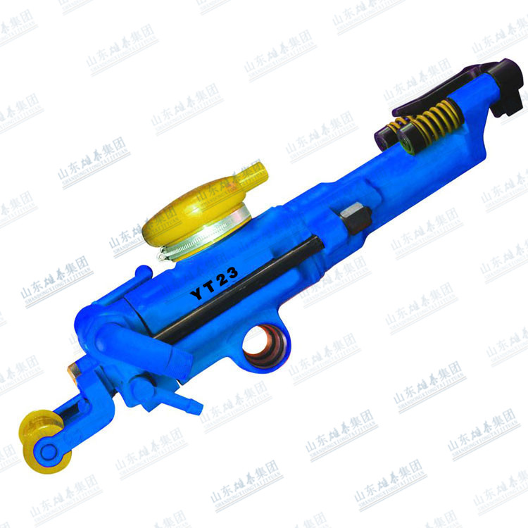 YT28風鉆采用氣水聯動、氣腿快速退回、氣壓調節(jié)等機構。控制手柄集中與柄體,機構新穎,操作方便,配帶的消音罩能有效地降低噪音和隨意改變排氣方向,改善現場作業(yè)條件。YT28風鉆采用了現代鑿巖機的設計技術,與同類型產品比較,具有效率高,噪聲小,重量輕,經濟效果好,進尺速度快等優(yōu)點。該機適合大型礦山、中型礦山和遂道的鑿巖作業(yè),在國內用戶反應好適用于中硬或堅硬巖石濕式鑿巖。操作機構集中、啟動靈活、氣水聯動、使用方便、維修簡易。