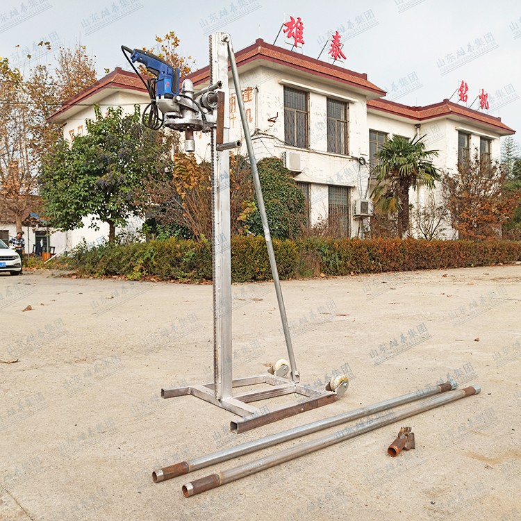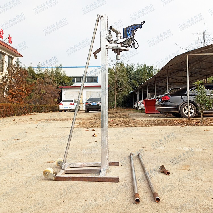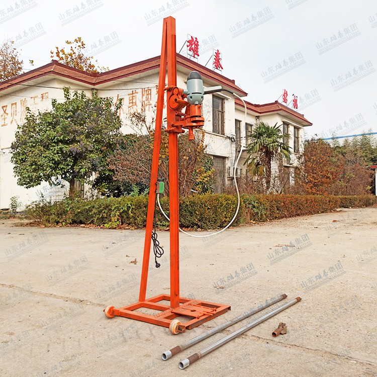 本款打井機(jī)采用了多齒輪設(shè)計(jì),雖然增加了生產(chǎn)成本和制造工藝,但這樣設(shè)計(jì)增加了打井機(jī)力量(就像汽車一檔比四檔有力、還便于掌握一樣的道理),打井有力,打井速度快、便于掌握。如果齒輪少了,一千瓦的電機(jī)還沒有七百多瓦的電機(jī)力量大、而且轉(zhuǎn)速高、打井時難于掌握。這款多齒輪結(jié)構(gòu)鉆井機(jī)經(jīng)過許多用戶多年使用,打井效果非常理想!便攜式小型民用電動打井機(jī)廣泛應(yīng)用于家庭/工廠生活用水打井、農(nóng)田灌溉水井、安裝水空調(diào)、工地打樁等。本公司生產(chǎn)的便攜式小型民用電動打井機(jī)機(jī)頭,可隨意選配鉆頭,鉆頭價格另算。也可另配鉆桿,鉆桿直徑是32mm、一根長約1.5米。