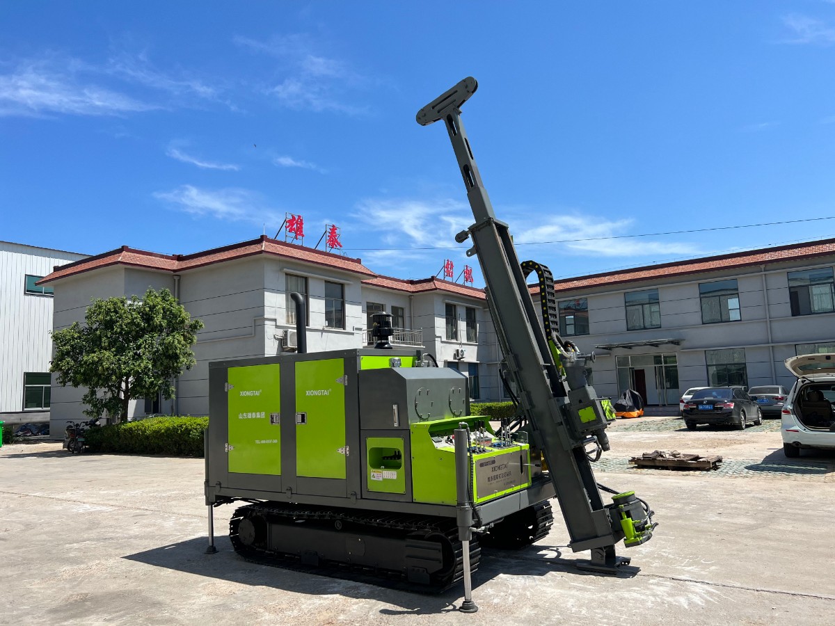 山東雄泰集團(tuán)自主研發(fā)生產(chǎn)的履帶式全液壓鉆機(jī)的無線遙控行走、液壓桅桿自動升起,動力頭自動左側(cè)移機(jī)提鉆為該款鉆機(jī)一大特色。其中桅桿自動升起,動力頭移機(jī)為我公司實(shí)用新型專利,極大緩解了現(xiàn)場施工的難度,有效減小了鉆機(jī)施工人數(shù),節(jié)約了成本,該履帶式全液壓鉆機(jī)分別采用76KW/115KW發(fā)動機(jī),動力強(qiáng)勁,扭矩大,適用于各類復(fù)雜地層的金屬礦開采。